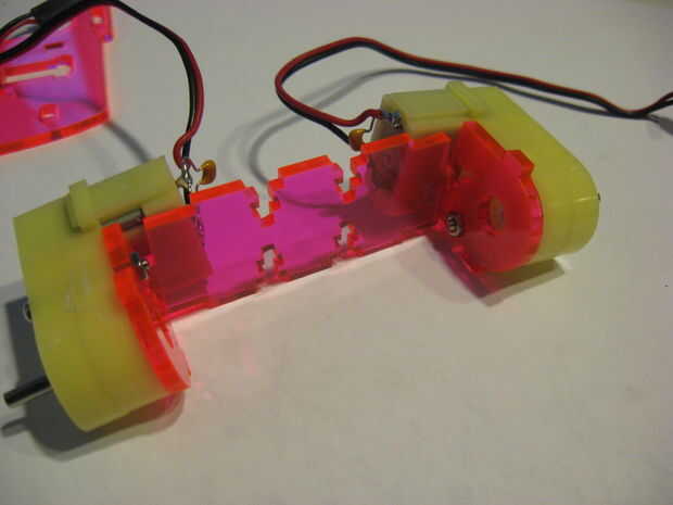 • Empezar por soldar un condensador y un cable rojo/negro a tu motor (ver foto)