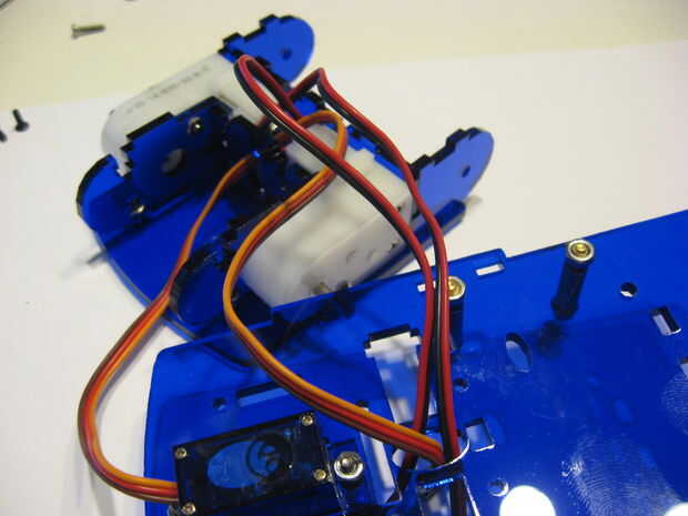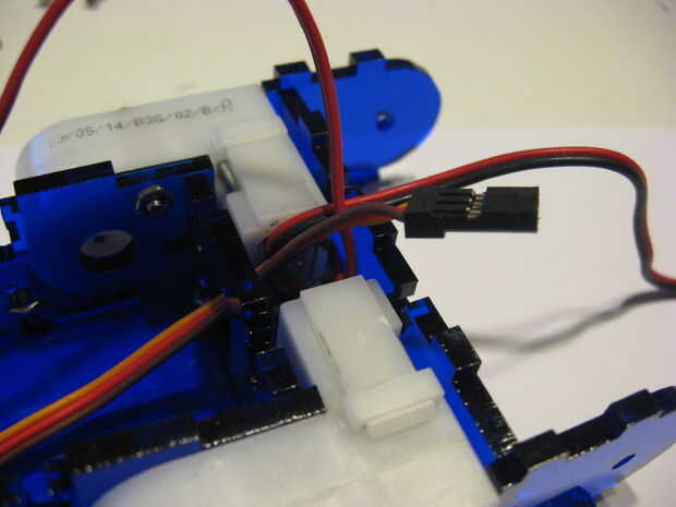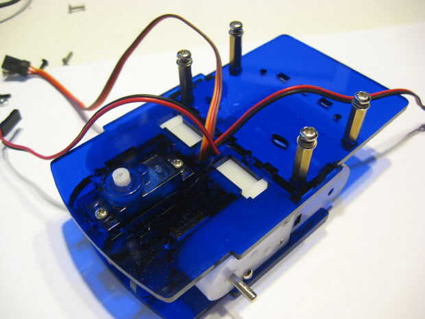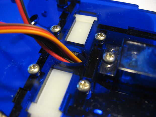 • El cable de servo a través del travesaño delantero, luego por el agujero central de la cubierta superior