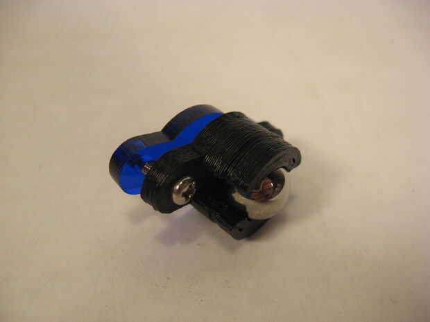 El rodillo de cola y tornillos viene en su bolsita sin embargo, necesitamos uno o dos de los espaciadores de plexiglás. Si haces un color renacuajo, utilice uno de los espaciadores. Si haces un kit educativo con plexi claro, utilizar a dos espaciadores. (2) tornillos 2-56 x 1/2" ir a través del rodillo de cola, el espaciador y luego a través del chasis. El rodillo debe terminar en el mismo lado que la batería. Apretar con las tuercas (2).