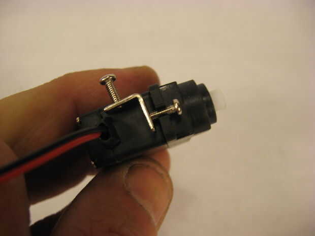 Ahora puede tomar los otros (4) tornillos métricos y conseguir que comenzó en los clips doblados a los motores. Sólo hilo en (un poco) por lo que permanecen conectados a los clips de motor, pero todavía tienen la cabeza del tornillo expuesto y "colgando". -La imagen de la nota.