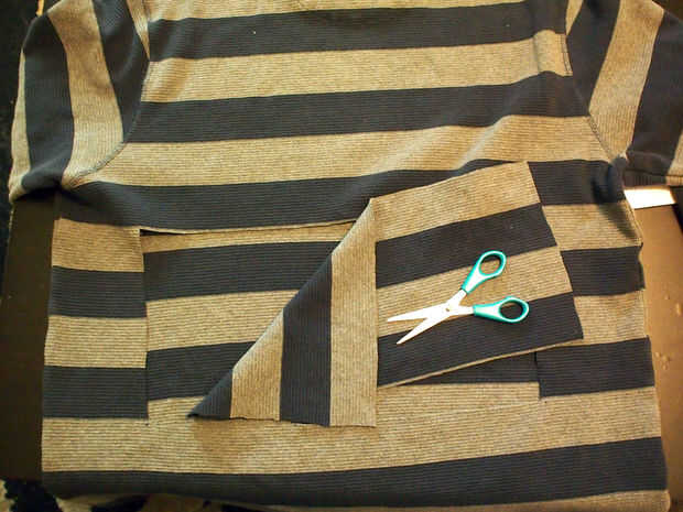 Yo aproximadamente había medido mi torso ancho había transferido la dimensión en la parte posterior de la camisa y había quitado un trozo de tela. Pecar de cauteloso y cortar a menos tela, puede siempre ampliar la abertura después si es necesario.