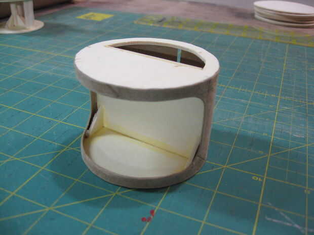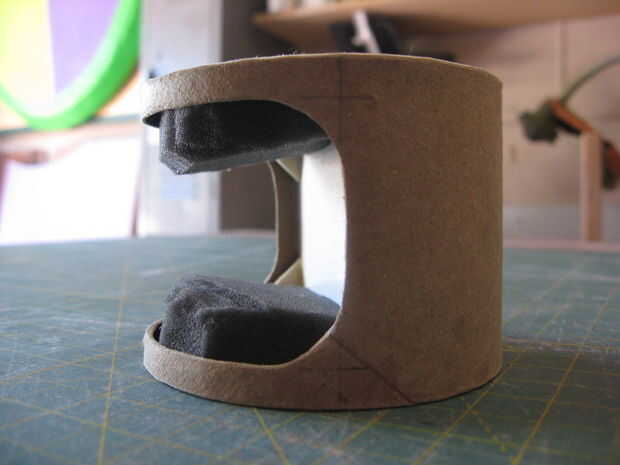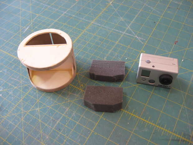 La carcasa de la cámara se hizo con madera contrachapada de arte junto con el material de tubo de cuerpo que se quitó anteriormente. Espuma de chatarra fue forma y pegan para mantener la cámara ajustada dentro de la vivienda.