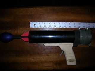 Conecte el acoplador de la Granada de Airsoft a una sección de tubería de PVC/ABS. Fije el conjunto de empuñadura de pistola a la tubería utilizando una mezcla de epoxy, bondo, abrazaderas, abrazaderas de plástico, etc.. Lo que hace segura a la tubería de la empuñadura. Si se usan tornillos, asegúrese de que los tornillos queden al ras con la parte interior superficie del tubo para la nerf no consigue enredarse en ella. Al utilizar pegamentos y epóxicos, asegúrese de que la varilla de empuje no consigue ninguÌ n pegamento en él. Conecte la varilla de empuje a la palanca de activación de la válvula. Todo hecho!!!!!!
