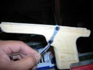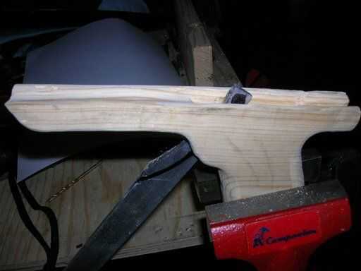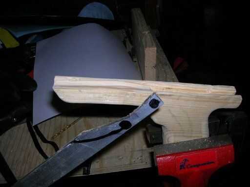 Imagen 1 - medir y dibujar una forma áspera del gatillo. Los dos puntos son: punto superior = agujero para la varilla de empuje; orificio inferior del punto de pivote del gatillo.