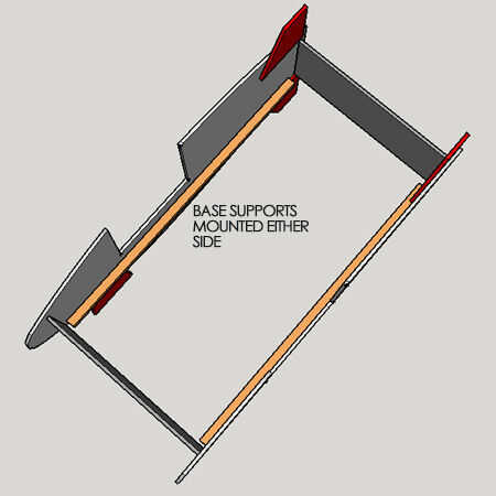 7. Fije los soportes de base hacia los lados con tornillos cola y 55mm para madera. Los apoyos se montan directamente sobre los pies y parte inferior de las aletas.
