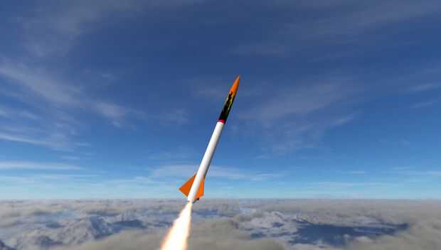 Esa primera imagen es una simulación de OpenRocket, no una imagen de un lanzamiento real. La otra muestra mi cohete en el cojín.