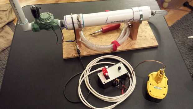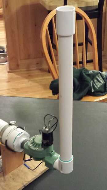 Se trata de un lanzador del cohete del aire comprimido. Utiliza tubos de PVC común y accesorios que cualquier persona puede tener en sus manos.Puede lanzar cualquier cosa de dardos Nerf a los cohetes caseros. Tengo todas las partes de un local es par