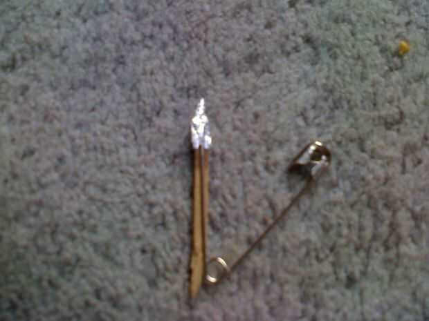 poner una tira pequeña de lata potrillo en la superficie que construyen ponga un fósforo en ella por lo que es la cabeza de fósforo en el potro lata y luego introduzca la aguja en la parte superior del partido por lo que parece la imagen y entonces dobla la lámina sobre todo y asegúrese de que está muy apretado y cuando haces todo de esa encuesta la aguja y donde sacó la aguja que la hélice