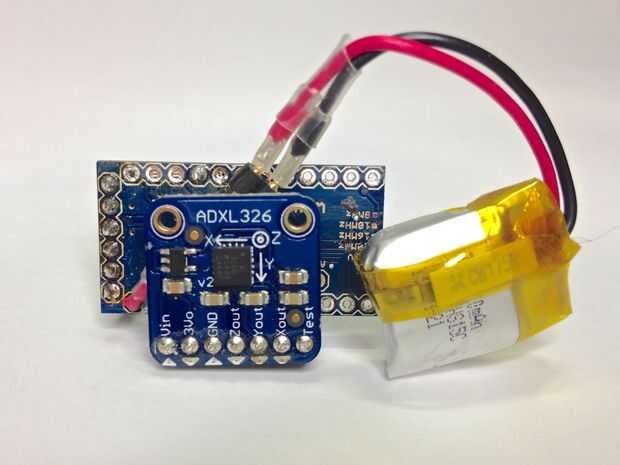 Este es un circuito muy simple para construir ya que tiene muy pocas piezas y pocas conexiones. Ya que es un circuito tan simple es un buen proyecto primero para aprender a soldar. El circuito se basa alrededor de un 3,3 v Arduino Mini Pro, un acelerómetro analógico de Adafruit ADXL 326 y un Sparkfun OpenLog. El Mini Pro lee la salida del acelerómetro y el OpenLog registra los datos en una tarjeta micro SD.