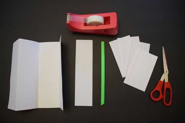 • 8 1/2 en tiras de papel de 2 3/4 en (doble un copia papel ancho medio y luego la mitad otra vez, dándole cuatro piezas de 8 1/2 en x 2 3/4 en tiras)