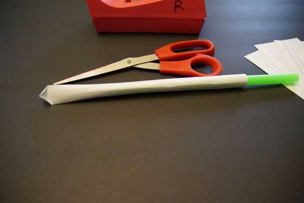 3. Después de crear el cono, ponga un trozo de cinta alrededor de él para evitar que el aire escape.