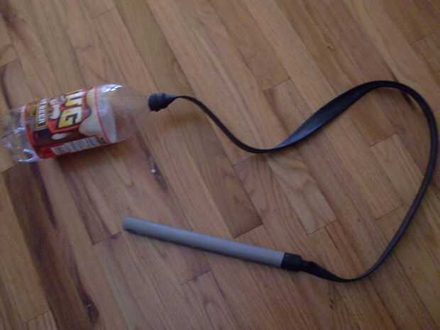 Para hacer el sistema de lanzamiento estire el tubo de la bicicleta sobre la botella de refresco de 2 litros y añadir alguna cinta si no sello bien, luego conecte el otro extremo del tubo de bicicleta con el tubo de pvc y añadir cinta si es necesario, ahora el sistema de lanzamiento se realiza, por lo que ahora tenemos que hacer un cohete.