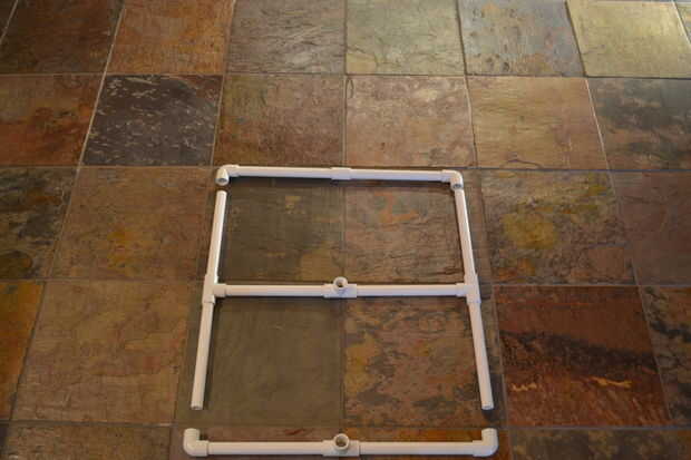 - Completar las patas superiores de la Asamblea de «H» con los restantes 2 codos y PulseDose uno 19 1/4" pieza de tubo, o dos 9 3/8" pedazos de tubo y el acoplador.