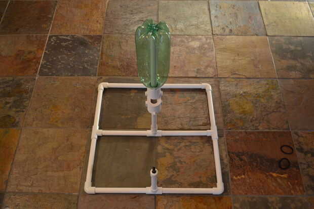 - Vuelva a instalar la botella en la parte superior del lanzador. Hacer cualquier ajuste necesario a la posición de los amarres de cable que se dedican al borde de la botella, mientras que la botella se acuña en la sección cónica del tubo lanzador.