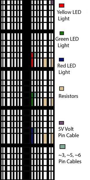 7. Enchufe los cables pin a ~ 3 y ~ 5 ~ 6 puertos. Se conectará a las luces amarillas, verdes y rojas respectivamente.
