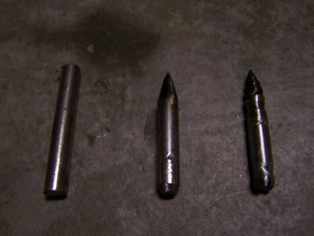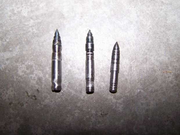 Mina son afilada por lo que pueden hacer más daño. Para ello coloqué los proyectiles en una prensa del taladro y utiliza el molinillo para moler los bordes, si utiliza la Dremel se puede obtener un acabado más liso y punto más fino. Esto puede ser un proceso largo, pero merece la pena.