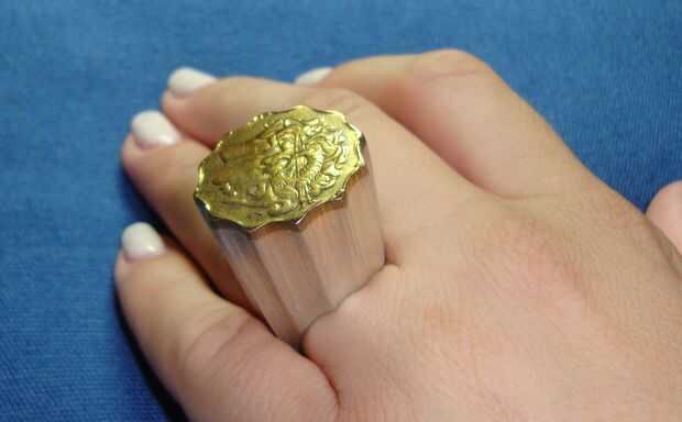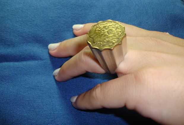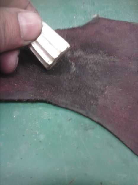 Poner algo de jabón en el pedazo de cuero y se usa para pulir la parte superior de la moneda del anillo.