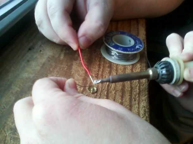 2. Conecte el cable rojo del LED a la varilla de torcer los cables juntos y utilizando cinta eléctrica., o de la soldadura.