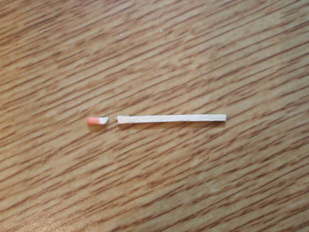 Este paso es muy fácil. Todo lo que tienes que hacer es conseguir tus tijeras, abrirlos, deslice el partido para que puedas ver unos pocos milímetros de la madera mostrando debajo de la cabeza de fósforo y cortarlo. La cabeza de fósforo tendrá una tendencia a "ping" apagado pero si su cuidado entonces no ir muy lejos. Puede mantener la cabeza de fósforo para usar en un cohete de fósforo o puede descartarlo. Acaba de poner el palo a un lado por ahora.