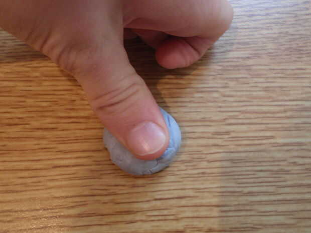 Este paso también es muy fácil. Todo lo que hacemos es tomar la bola de Blue-tack y empuje hacia abajo en él con la palma o el dedo pulgar por lo dos lados de él son bastante planas. Debe acabar siendo aproximadamente de 1.5 a 2 cm de altura.