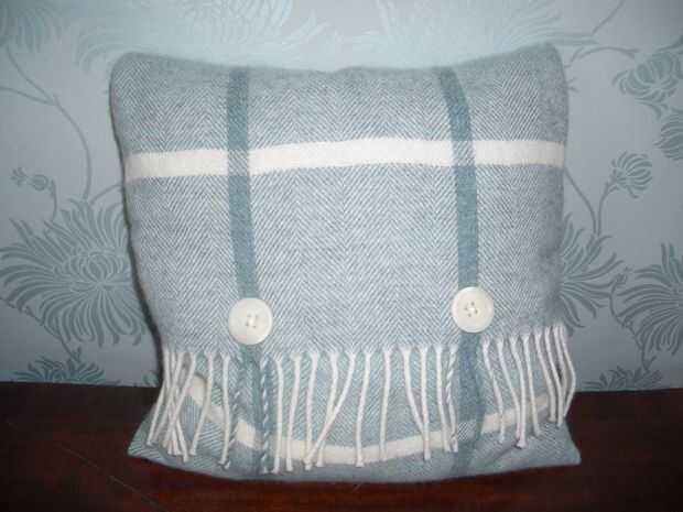 Mi bufanda mide 68 "x 14.5" (173 cm x 37 cm) que me dio 2 fundas de medida cuadrada de 13"(33cm). Estos ajuste bien alrededor de 14"(35.5 cm) cuadrado cojín cojines - el cojín debe ser 1-2" (2.5-5 cm) más grande que la tapa para darle un cojín regordete.