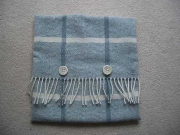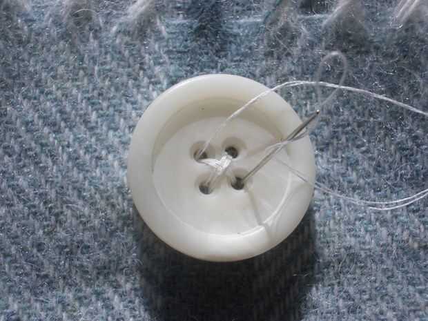 Con el cojín en su lugar, marque donde necesitan ir en la parte inferior de la superposición y el frente del amortiguador debajo de la superposición los cierres de Velcro o corchetes. El borde de cada botón debe estar aproximadamente 1/2" desde el borde inferior de la superposición, con 1" diámetro botones el centro del círculo del velcro o botón automático será 1" desde el borde con flecos. Colocar sobre una tercera el 2/7 del camino en cada lado, donde se ve mejor. Cuando has decidido donde es ir al centro de cada botón, coser la prensa stud o velcro círculo debajo de él, tomando sus puntos a través de la tela para la fuerza. Luego coser la otra mitad del cierre en el lugar apropiado en la parte delantera del cojín, debajo de la superposición.