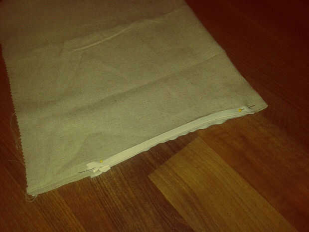 Doblar su material por la mitad otra vez la misma forma que antes y esta vez cerrar la cremallera. Luego sobre la capa de material no han cosido la cremallera a pin, en la que mantienes recta con el otro lado.