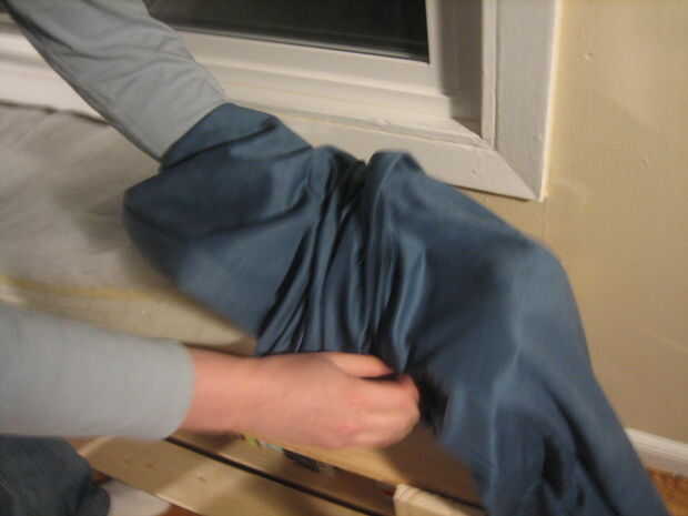 hicimos este banco para el vestíbulo de nuestro negocio. Sabíamos necesita amortiguadores, pero no tenía el presupuesto que una costurera hacer para nosotros. Después de explorar opciones, encontré algunas ideas en Pinterest y combinado para crear la