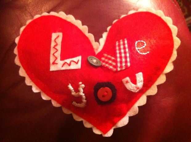 puño siempre proyecto a mano! :) Hice esto con 2 piezas de fieltro para cada lado de la almohadilla, unos trozos de cinta, hilo de algodón y botones para la escritura y el relleno!