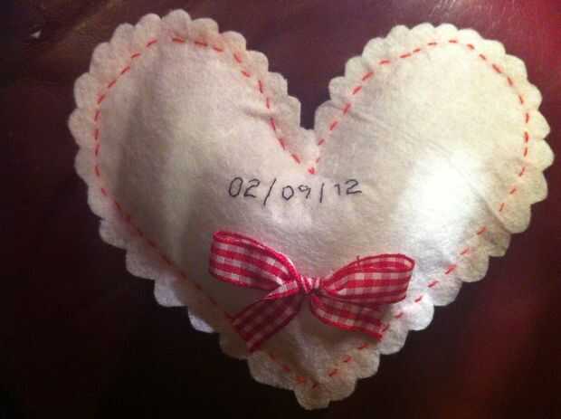 en la parte posterior - apenas cosido la fecha que nos juntamos y la cinta un poco debajo de :) Espero que les guste!