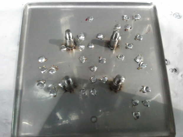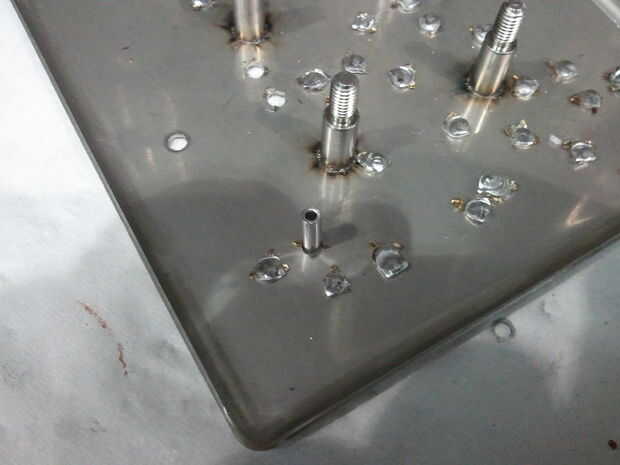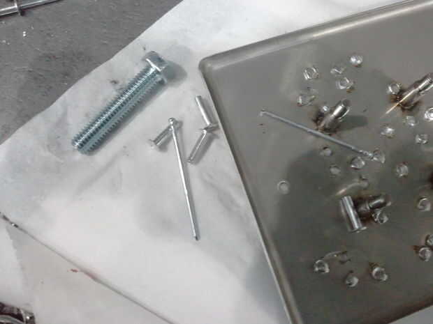 Primera de quitar la clavija de remache, ponerlo en el agujero y cortar la parte de atrás del remache por lo que es justo orgulloso de la placa.