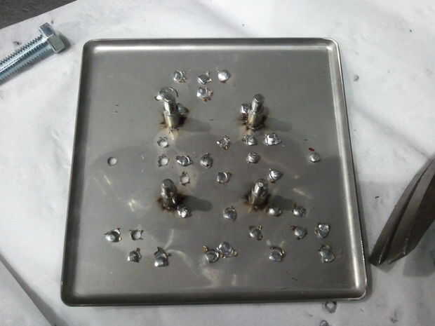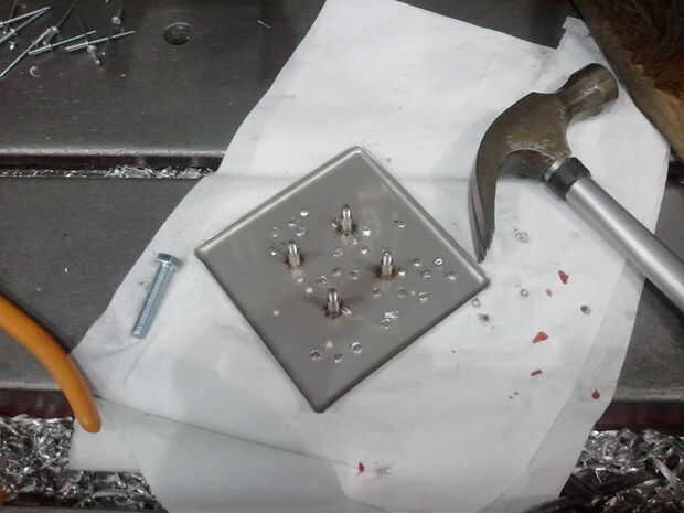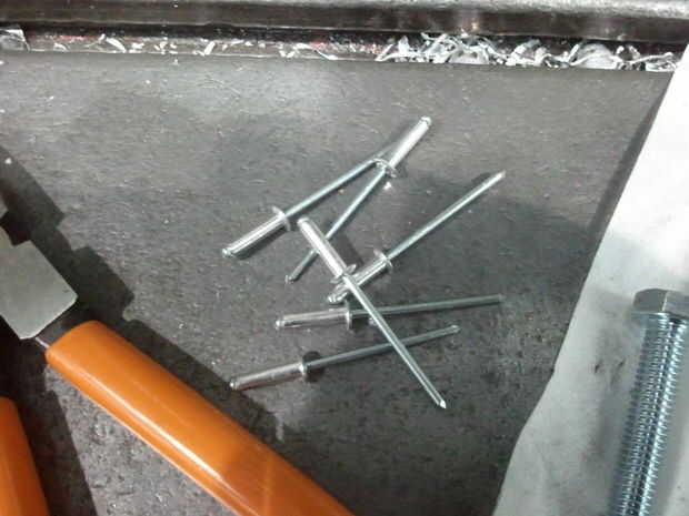 Tome un perno M8 y colocarla en el remache y smack lejos, hay una diferencia de sonido de destinct cuando el remache es tan plano como se consigue.