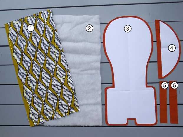 4. tela como el patrón de papel (1 cm y 2 cm más grande para coser) (mira la imagen)