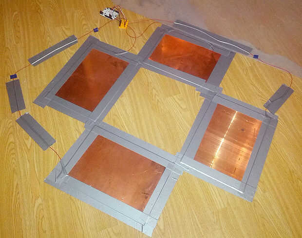 Esta guía describe cómo crear una almohadilla capacitiva de baile para juegos de PC como StepMania. El costo total de materiales es de aproximadamente $25 (menos si ya tienes algunos componentes), hay no hay piezas mecánicas involucradas, y la construcción no requiere herramientas alguna. El diseño tiene dos inconvenientes vale la pena mencionar: no puede utilizar la almohadilla con los zapatos (pero usted puede usar calcetines), y no puede activar más de dos flechas a la vez (sin manos).