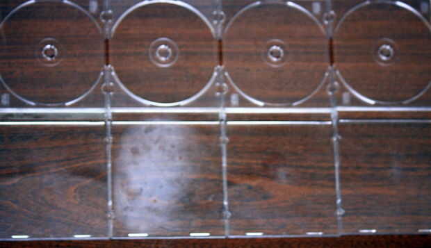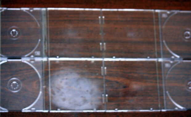 Antiguos escritorios de la computadora tienden a usar muy rápidamente, pero he encontrado laminado incluso escritorio puede ser recubierto con polietileno, maltratados solo el escritorio, polyshade usado negro para cubrir totalmente el patrón en el e