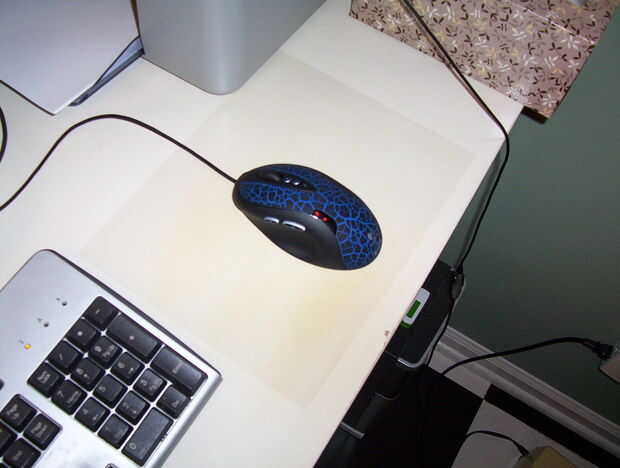 que soy demasiado barato a gastar $25 en un cojín de ratón de calidad, así que decidí hacer mi propio. Todo debe ser bajo $5. Estoy usando con el ratón Logitech G5 láser y han probado con un ratón de Razer Copperhead láser y un ratón de bola barato de Microsoft. Funciona muy bien con todos ellos, se desliza bien y pistas perfectamente.