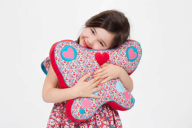 Para coser tu propio peluche mariposa, he preparado un patrón PDF que contiene un patrón para el cojín básico y los detalles de apliques en el tutorial (por supuesto usted puede diseñar sus propias formas de apliques si quieres). Aparte de esto, usted necesitará unos 150 cm / 59″ de la tubería.