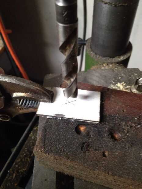 Cortar dos trozos de chapa 1 1/8 de pulgada de 1 7/8 de pulgada y los afianzado con abrazadera juntos. Tierra los bordes en los cuatro lados para que las piezas serían idénticas. He marcado el centro y simultáneamente había perforado un agujero de 7/16 de pulgada a través de ambos.