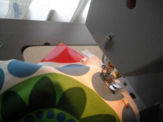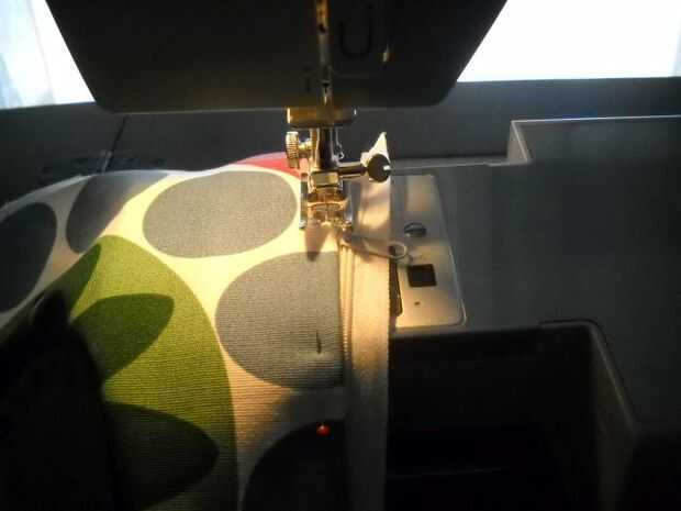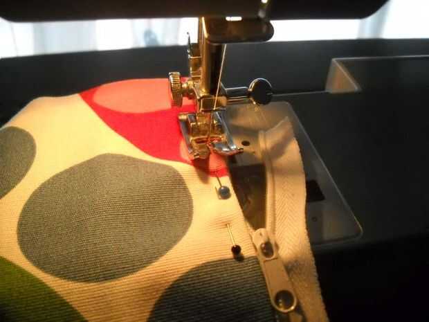 Coser el lado 1 de la cremallera. Mi nueva máquina de coser tiene un prensatelas de cremallera, pero por ahora no sé cómo usarlo (aprenderé, tal vez). Así que usar el método de mi madre: abrir la cremallera, coser 10/12 cm. Ponga la aguja en la tela y levantar el pie, cierre la cremallera, baje el prensatelas y vaya a coser.