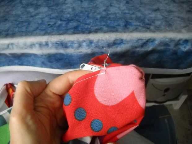 Coser los ángulos cerca de la cremallera, tal vez prefieres hacerlo a mano y no por la máquina de coser.