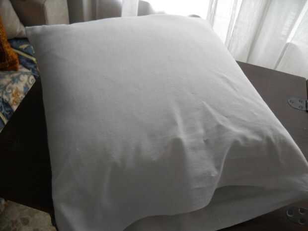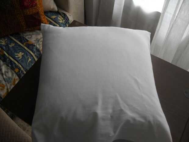 Se puede hacer relleno con diversos tipos de material. Encontré hace años dos listo para usar pilow rellenos por 1 euros y era el tipo de relleno muy suave hipoalergénico, así que usé los.