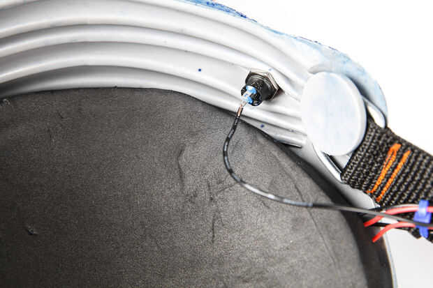 Sus cables se rosca hasta el PCB principal entre los cojines del hombro.