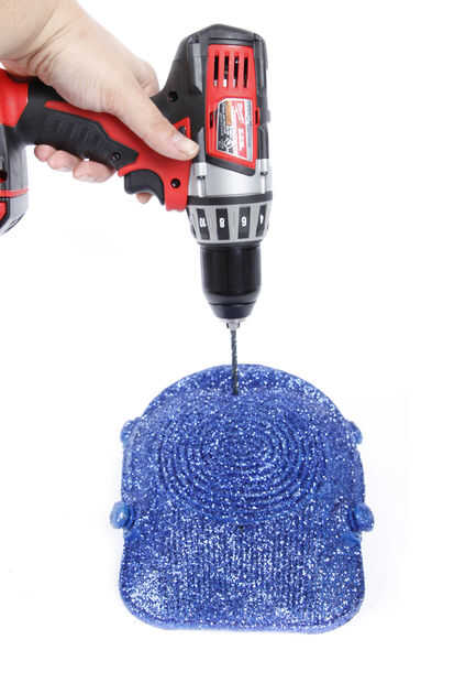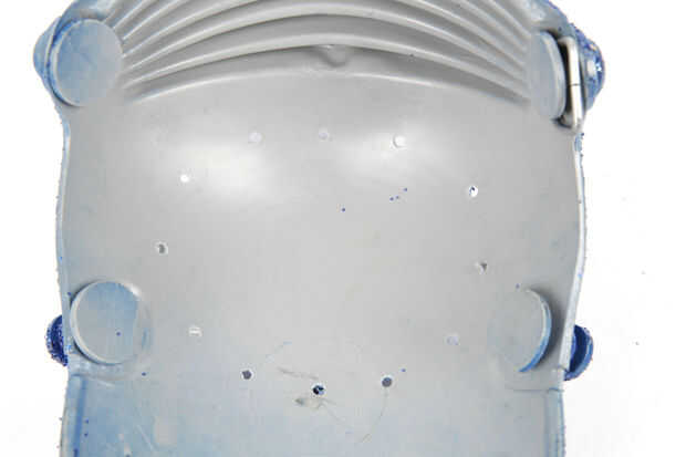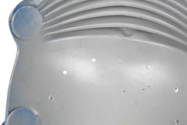 Te dejo la forma de la almohadilla del hombro indican donde yo pondría mi agujeros, así que puse 12 en un gran círculo alrededor del óvalo en el centro. Otro 6 agujeros fueron hechos por los bordes, y otro 6 agujeros fueron colocados dentro del anillo del primer círculo de 12 hoyos.