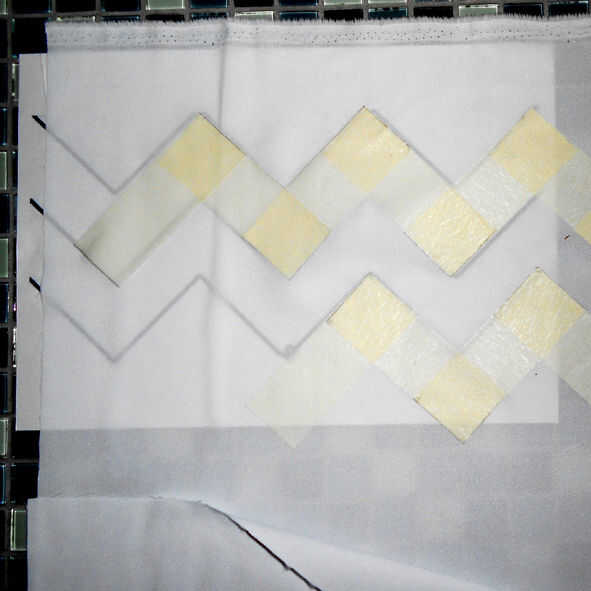 Imprimir tu diseño en una impresora de la PC y usar esto como una plantilla detrás de la tela para saber dónde colocar la cinta adhesiva. Asegúrese de que todos los bordes estén completamente rectos como cualquier defecto se mostrará como un pulgar dolorido!