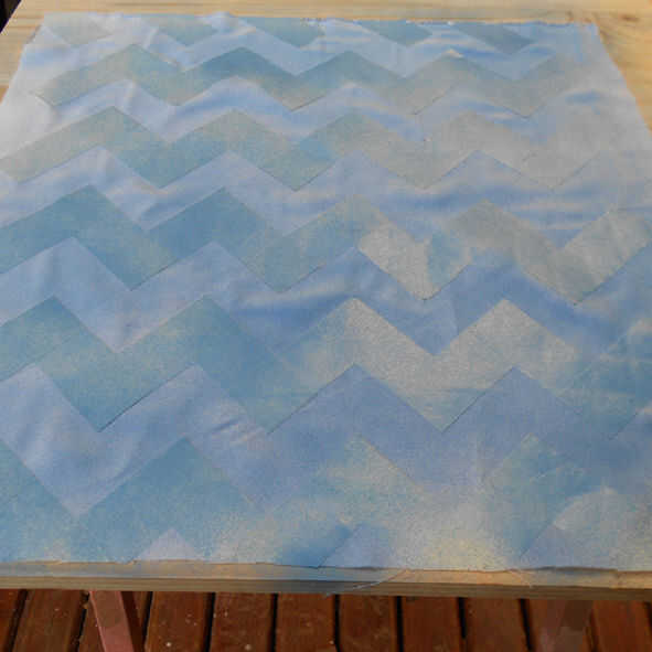 Usar pintura en aerosol solamente plana mate o satinada, como brillo de purga.  Aplicar capas de todos los lados (moverse) hasta que la tela esté completa cubiertos de luz y luego dejar secar.