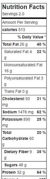 (El análisis nutricional de esta receta se ha preparado lo mejor de mi capacidad usando el analizador de receta de MyFitnessPal).