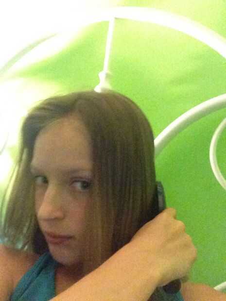 1. una vez más se cepille el pelo hacia fuera 2. recoger su cabello en un lado de la cabeza cerca de tu oído con un cepillo 3. fijar el cabello y puso el empate de pelo