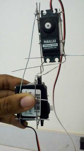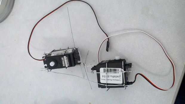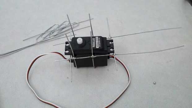 Cuando crear un conector entre su cola y su caja de la caja del motor Servo Asegúrese de que hay un poco decente de espacio entre los dos para que no interfieran entre sí. con cerca de cuatro sujetapapeles enderezados totalmente la soldadura de un extremo a la caja que creó para el motor servo y gire el otro extremo alrededor de la primera guía que se ve en la base. Hacer esto para los cuatro que también se puede añadir más de yapa y yo soldado parte torcida.
