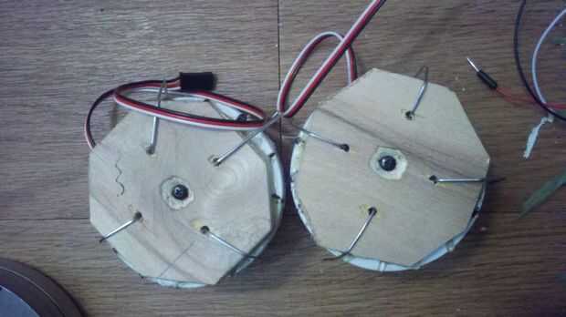 A continuación, usted querrá medir para encontrar el centro exacto de la tapa, marca y perfore un agujero no a grande de un todo aunque tiene que ser apenas el tamaño correcto para su tornillo de montaje. El tornillo de montaje es el tornillo pequeño que se encuentra en el centro del motor de servo. Luego necesitas los cuatro cuerno echó a un lado del motor servo Desenroscar la "X" en forma de cuerno poner su tornillo de montaje en lugar seguro, mientras tanto toma el cuerno y colóquela en el interior de su tapa el agujero hecho con el centro de la bocina de la guarnición. Sostenga la bocina en su lugar y marque los cuatro orificios exteriores del cuerno, retire el cuerno y donde se marcan los agujeros de taladro. Después de que agarrar unos pequeños tornillos, vuelva a poner el cuerno "X" y atornille la tapa.