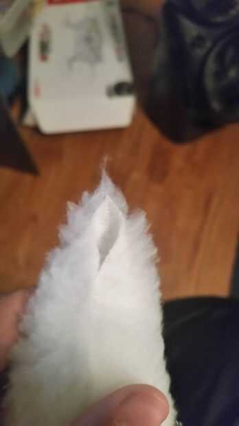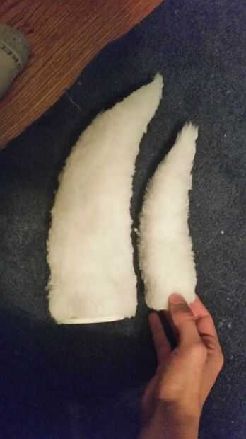Al llegar al final, cortar todo el exceso de material. Ten cuidado en este paso porque esta parte es importante si quieres que se vea profesional. Aplique una pequeña cantidad de pegamento a lo largo del interior de un lado y presione hacia abajo. A continuación hacer lo mismo con el otro lado y asegúrese de que los bordes se reúnen en el centro. Continuar hacerlo hasta la última pulgada más o menos desde el final. Al final no era tan puntiagudo como quisiera que se vea así que esta corte en un punto antes de cerrar pegando. Una vez hecho esto, se hace la cola básica!